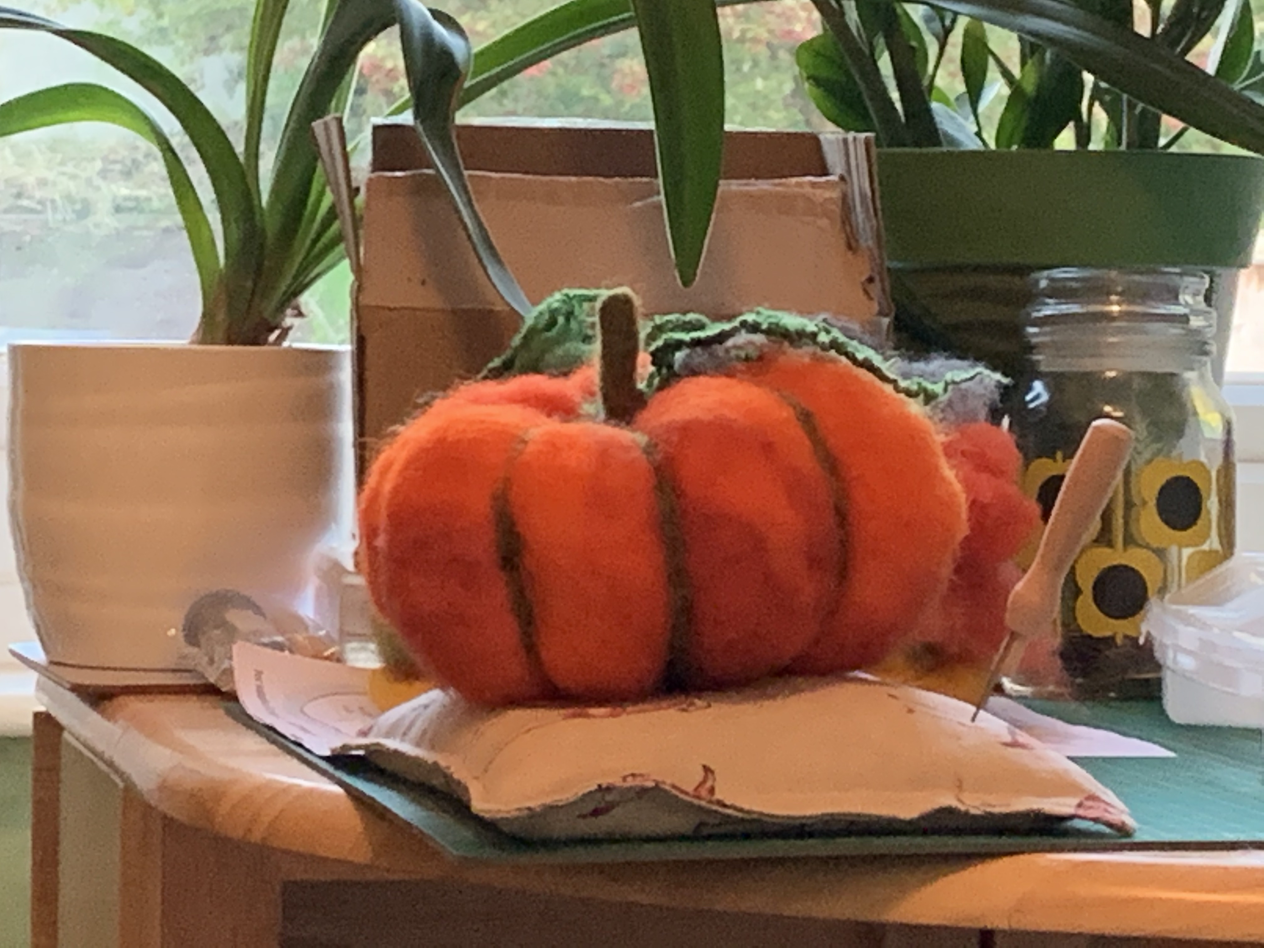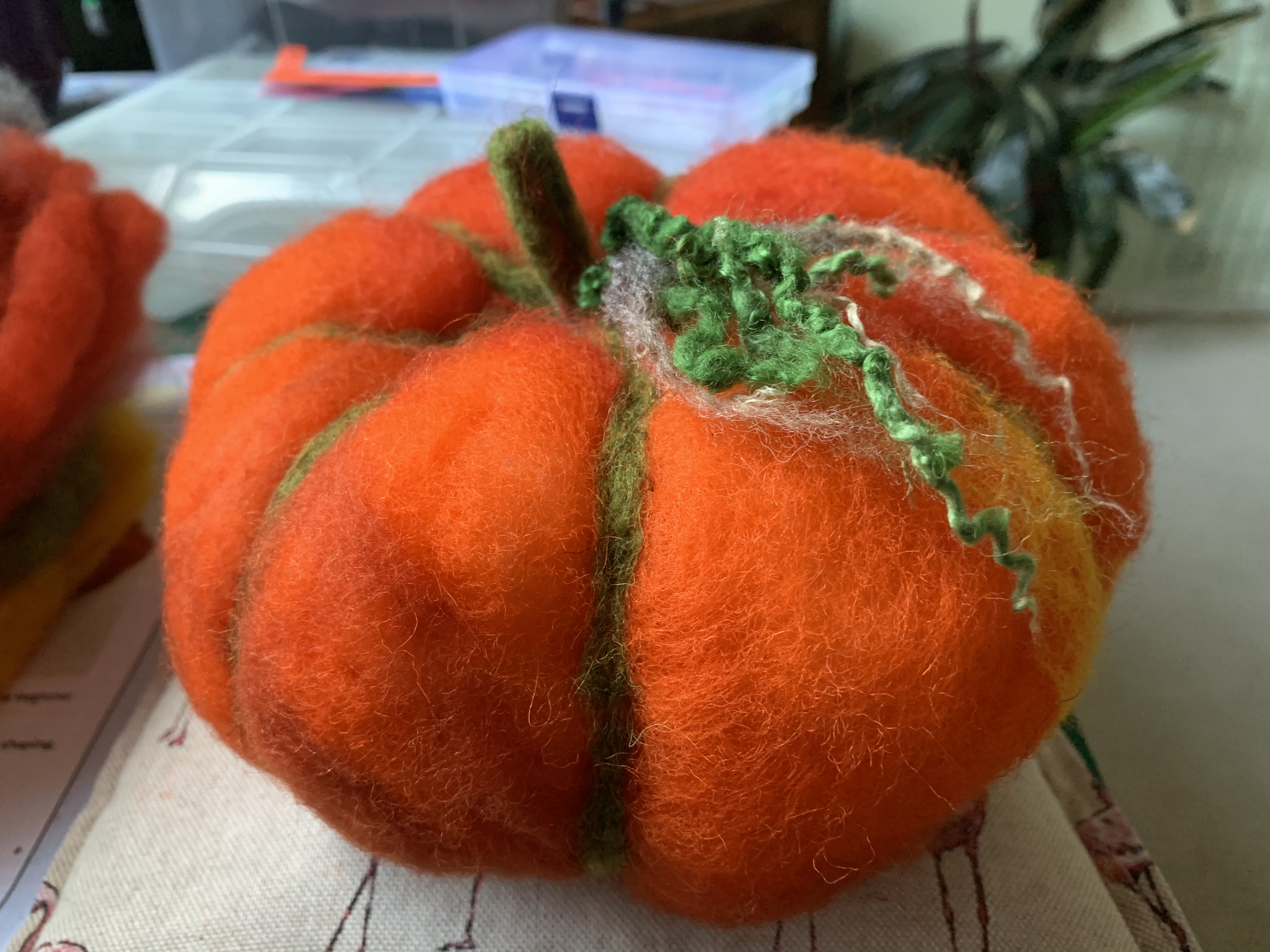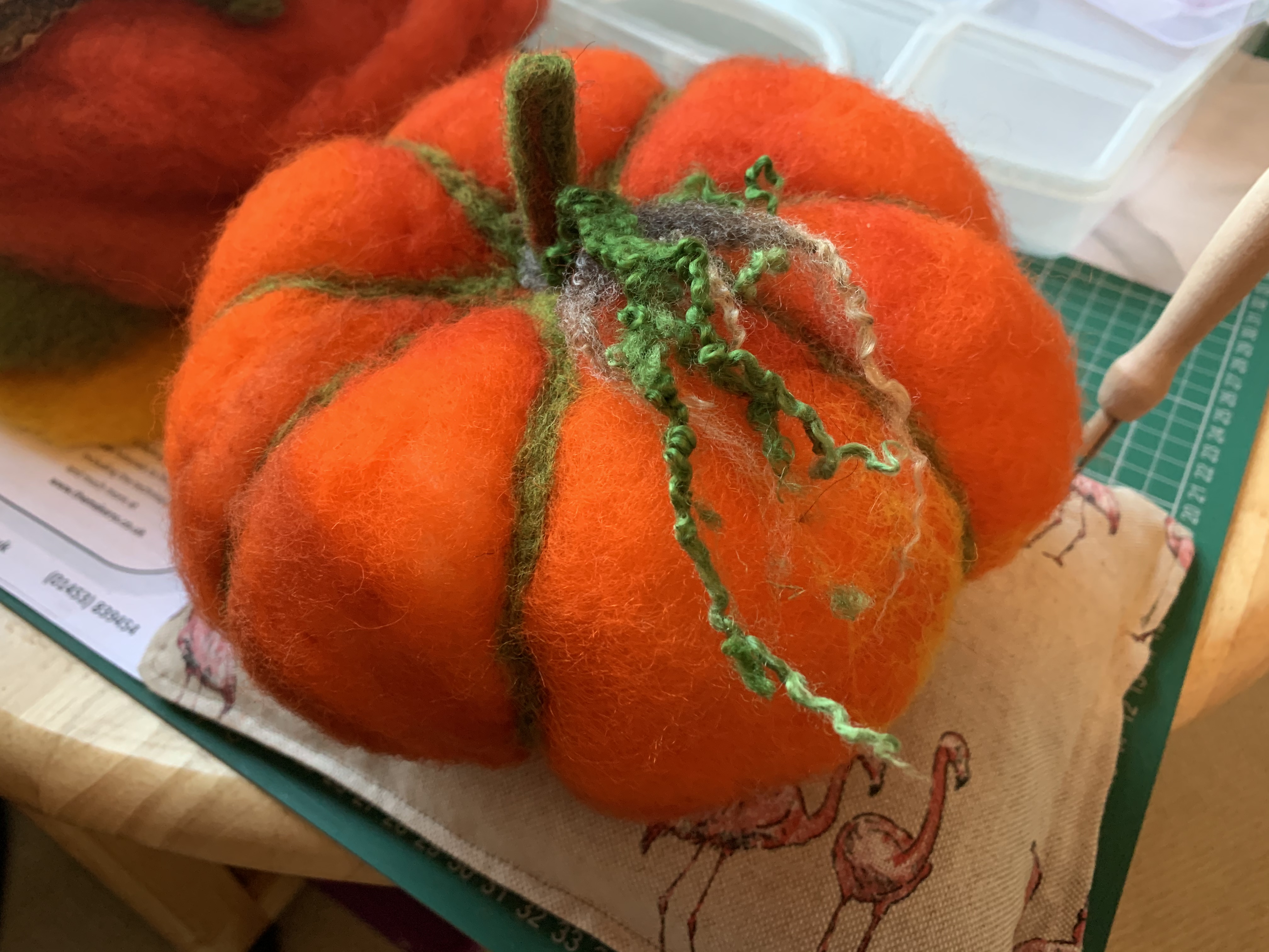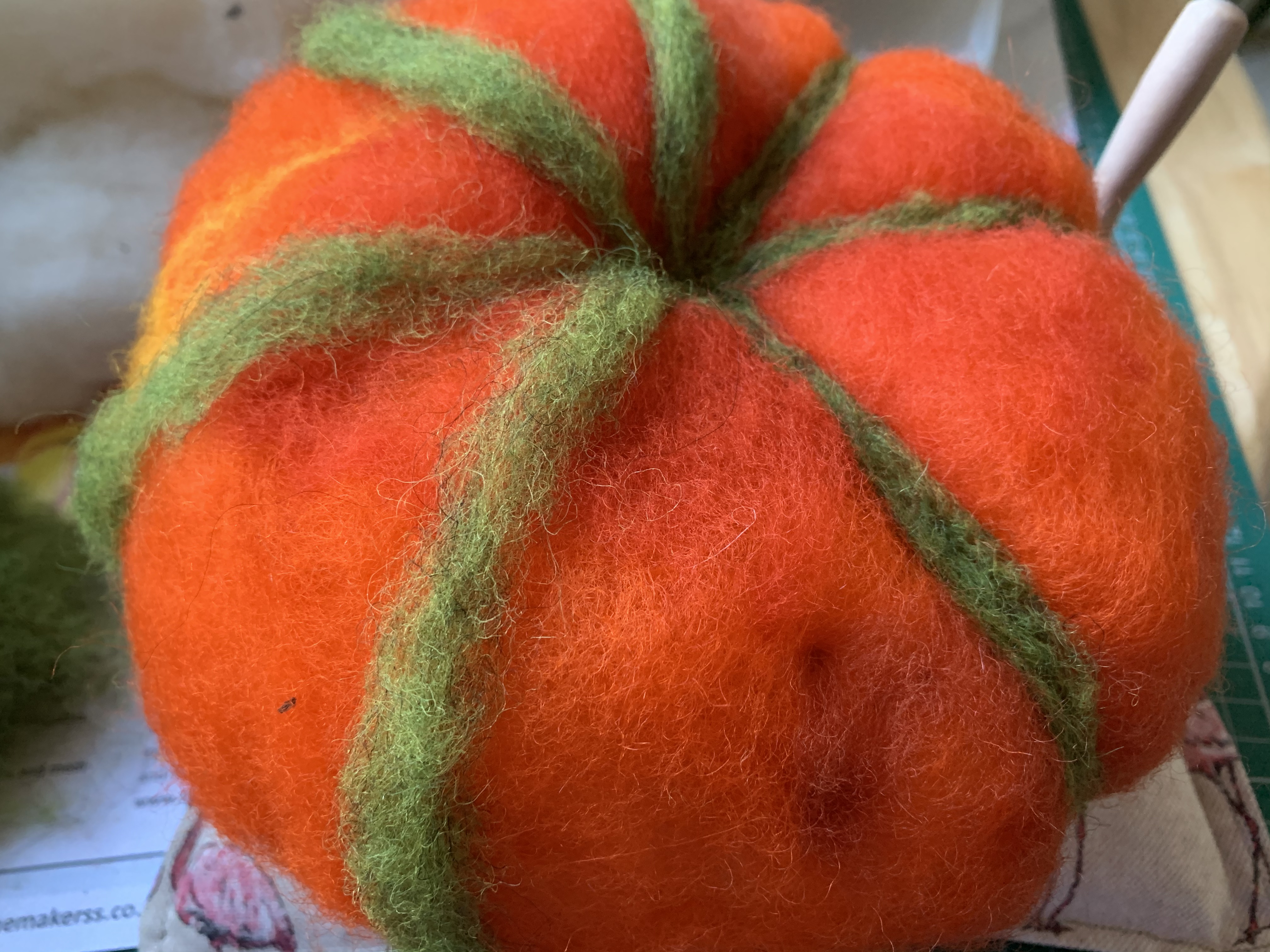 So now we are in October thought it was time to try out my needle felting pumpkin kit I got from The Makerss from their stand at The Handmade Festival.
