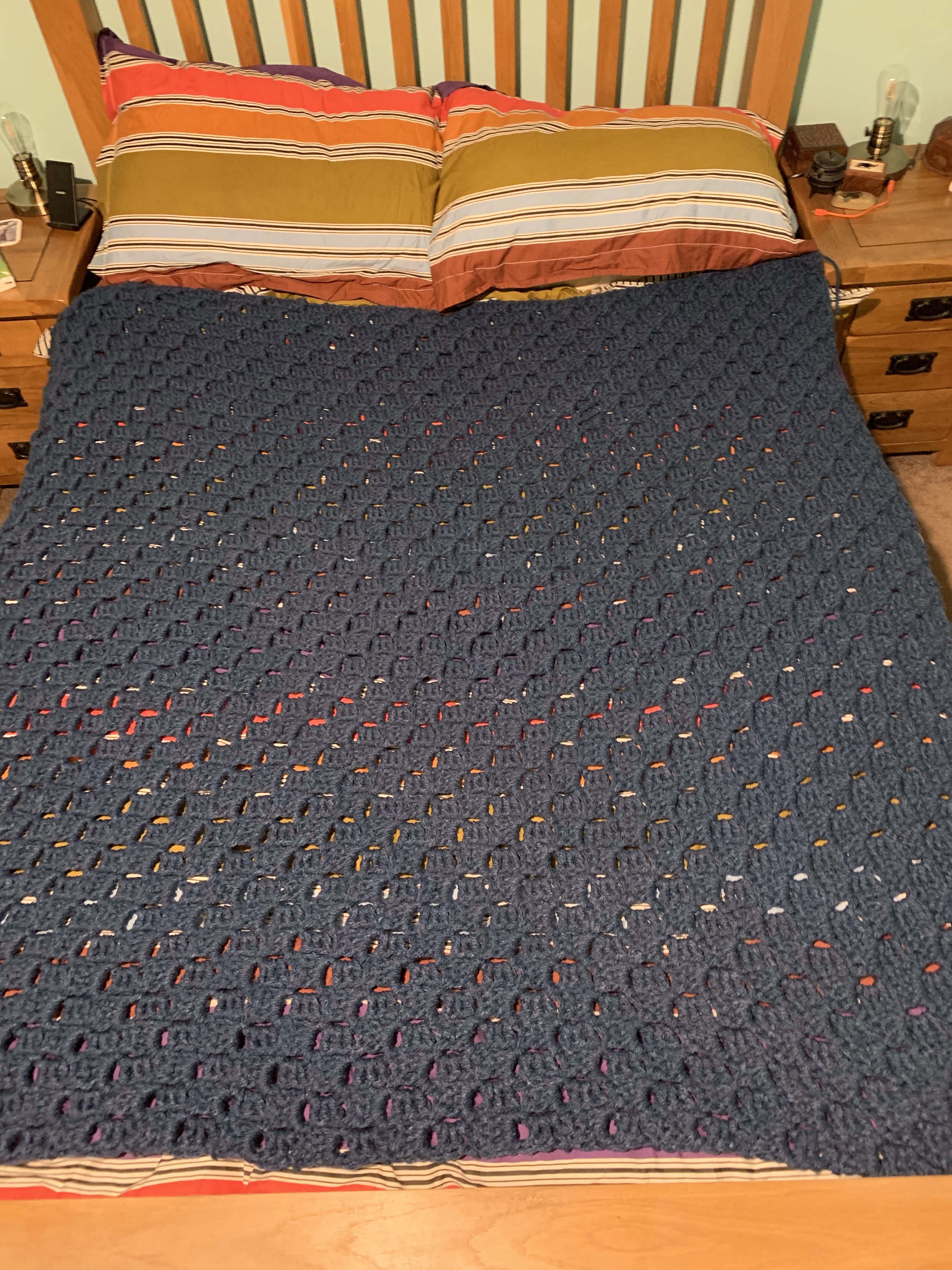 Crochet wise I have finished the main section of my corner 2 corner blanket for our bedroom. The bedroom will be decorated in a rich dark blue (can’t remember exact name at moment) and the chimney breast will be a bright yellow. Hence the blue main body of the blanket I am unsure if I should add a yellow border or not π€ time will tell I guess lol anyway here is the blue done in So Crafty Chunky Yarn π§Ά colour Midnight.